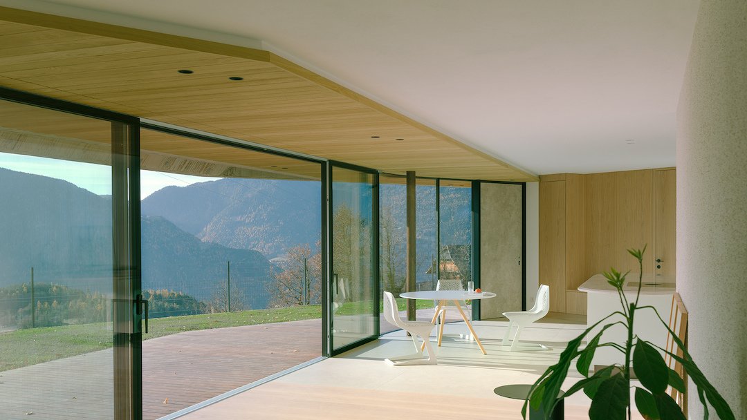 The topographical orientation requires a precise response to solar exposure. The cantilevered ceiling provides shading for both the interior and the terrace during the summer months, preventing direct sunlight and mitigating the risk of overheating. The floor-to-ceiling glazing facing the terrace blurs the boundary between interior and exterior spaces.
