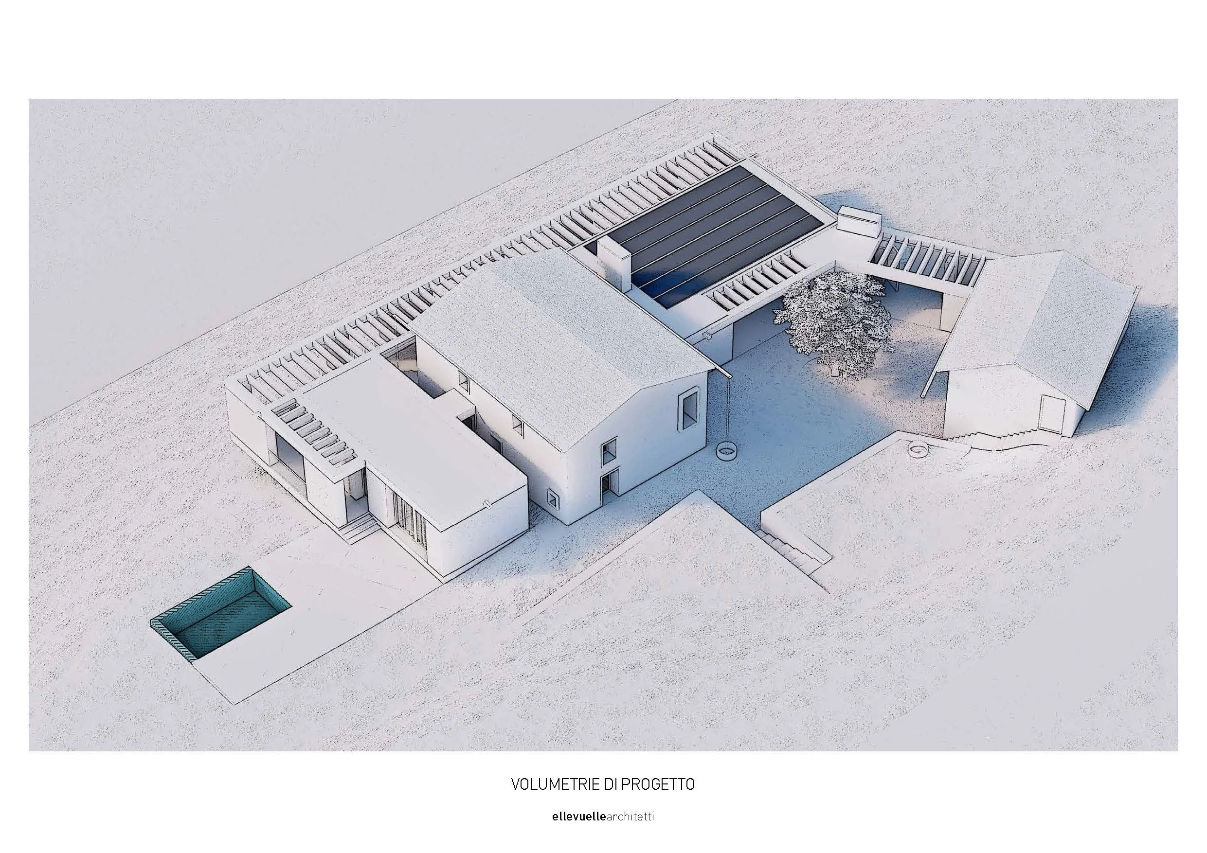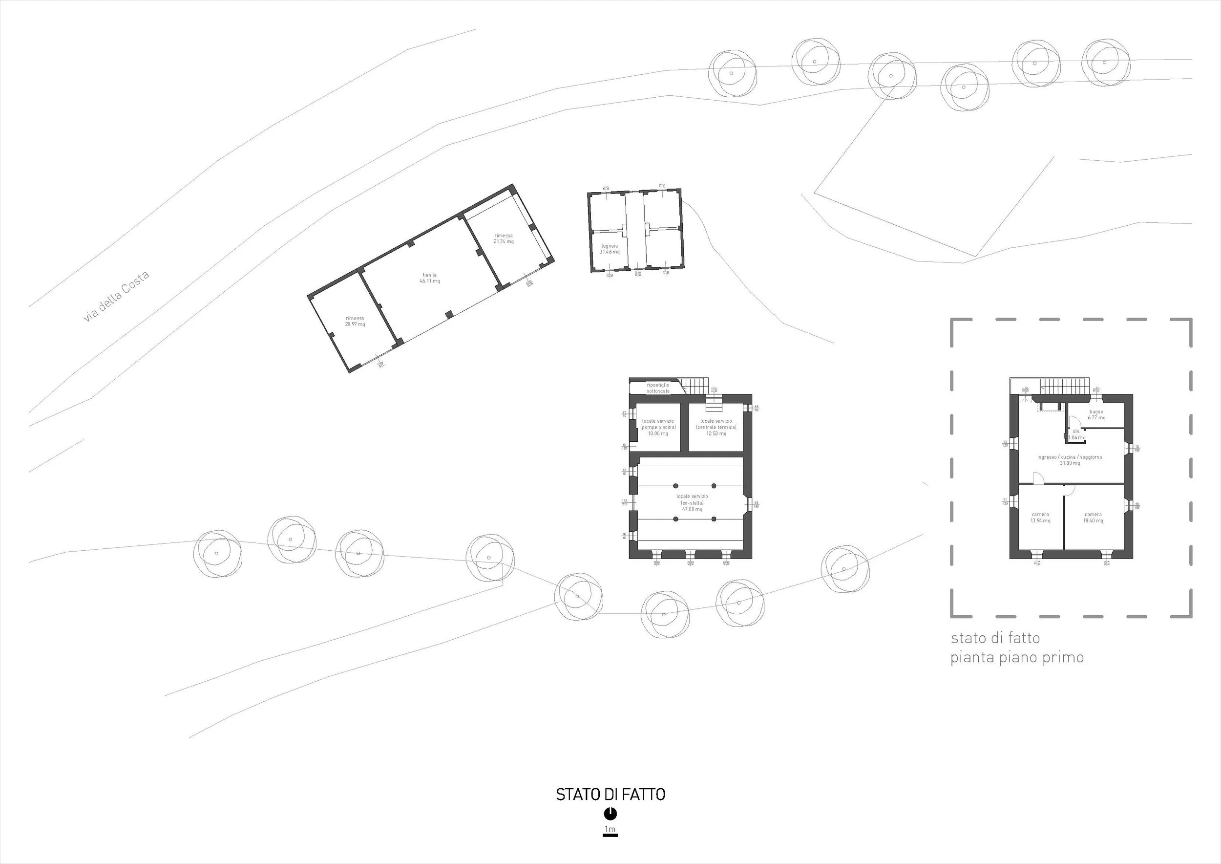 The project is inserted within a stratified rural system composed of a stone house and a former barn, both carrying a precise scale and a clearly legible constructive memory. Rather than seeking a mimetic synthesis, the intervention works through critical continuity: a new volume is inserted between the two existing buildings, acting as an inhabited threshold capable of connecting without merging.