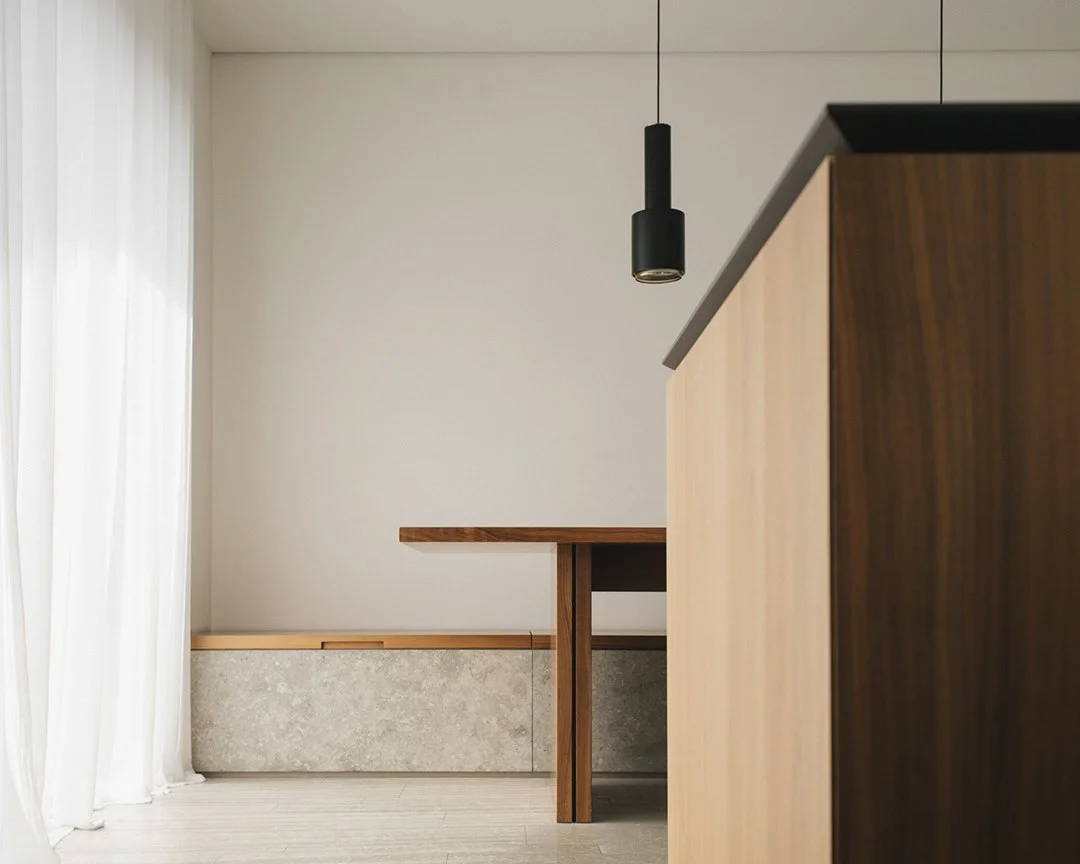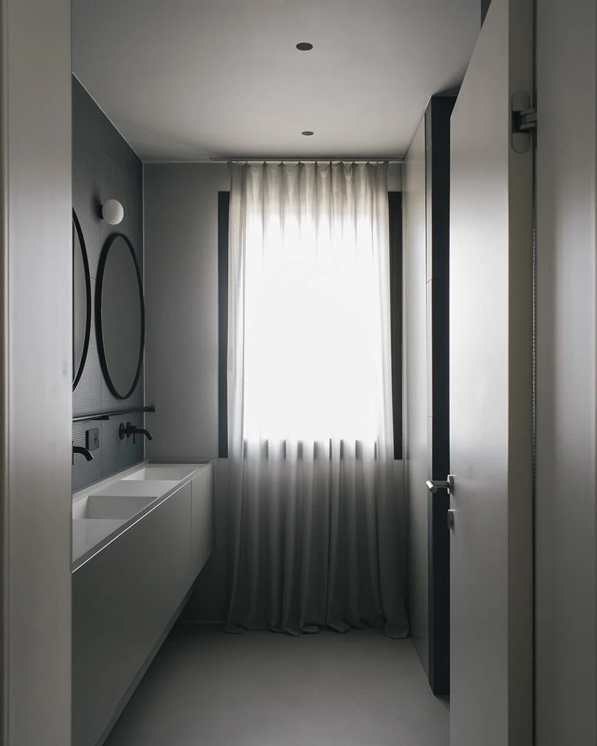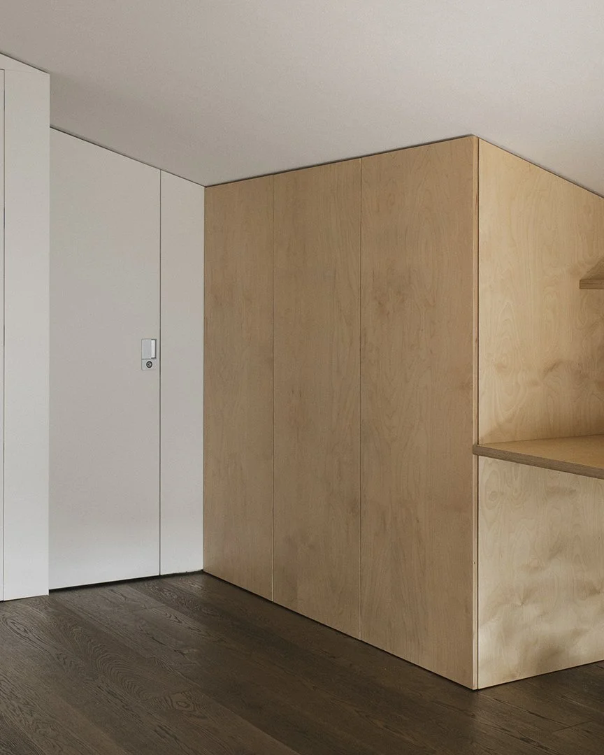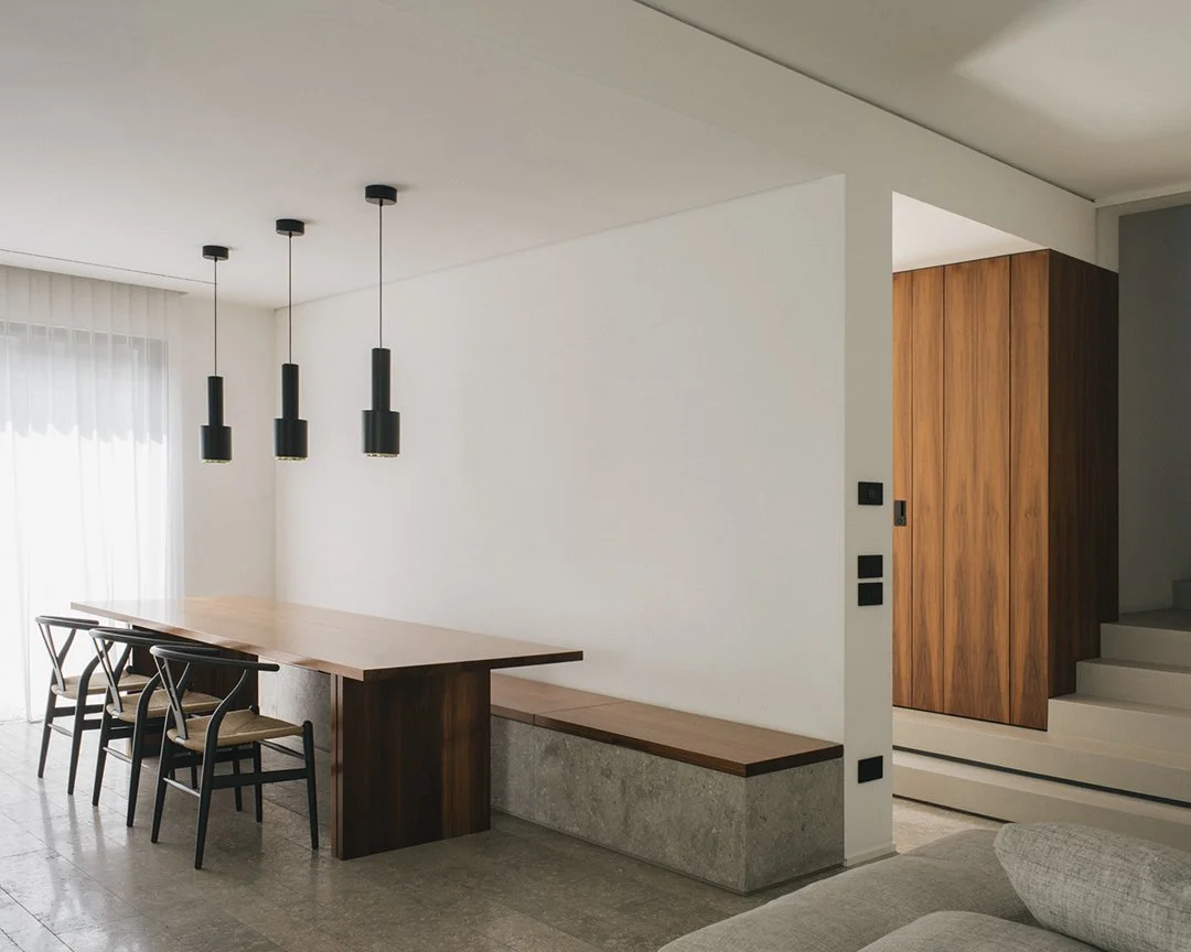The new internal flow study led to modifications in the staircase connecting to the upper floors, allowing for the creation of an open space on the main raised ground floor that serves as the living area. The main entrance creates an independent zone that houses a new service bathroom and a small wardrobe. The bathroom in the sleeping area was enlarged, as it resulted from combining the existing bathroom with the original master bedroom bathroom.