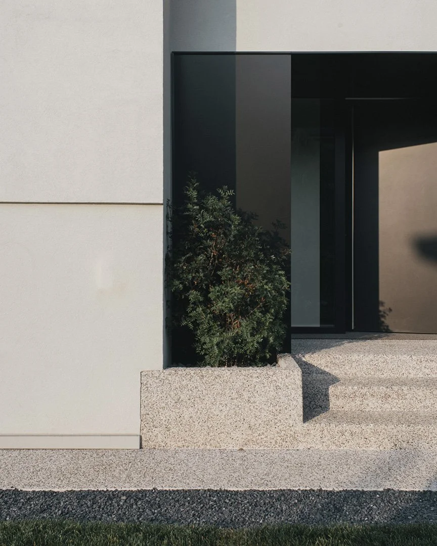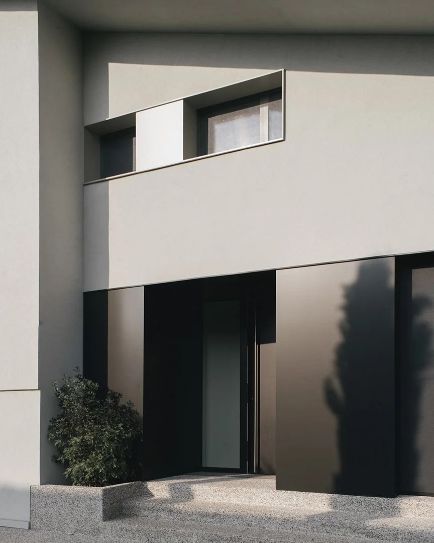 A new opening, featuring a sliding glass, leads to the private garden on the west side, bringing natural light into the open space area. This intervention resulted in a redesign of the entire west facade, creating a sort of metal canopy that connects the main openings of the facade, emphasizing the entrance to the home and making it more protected.