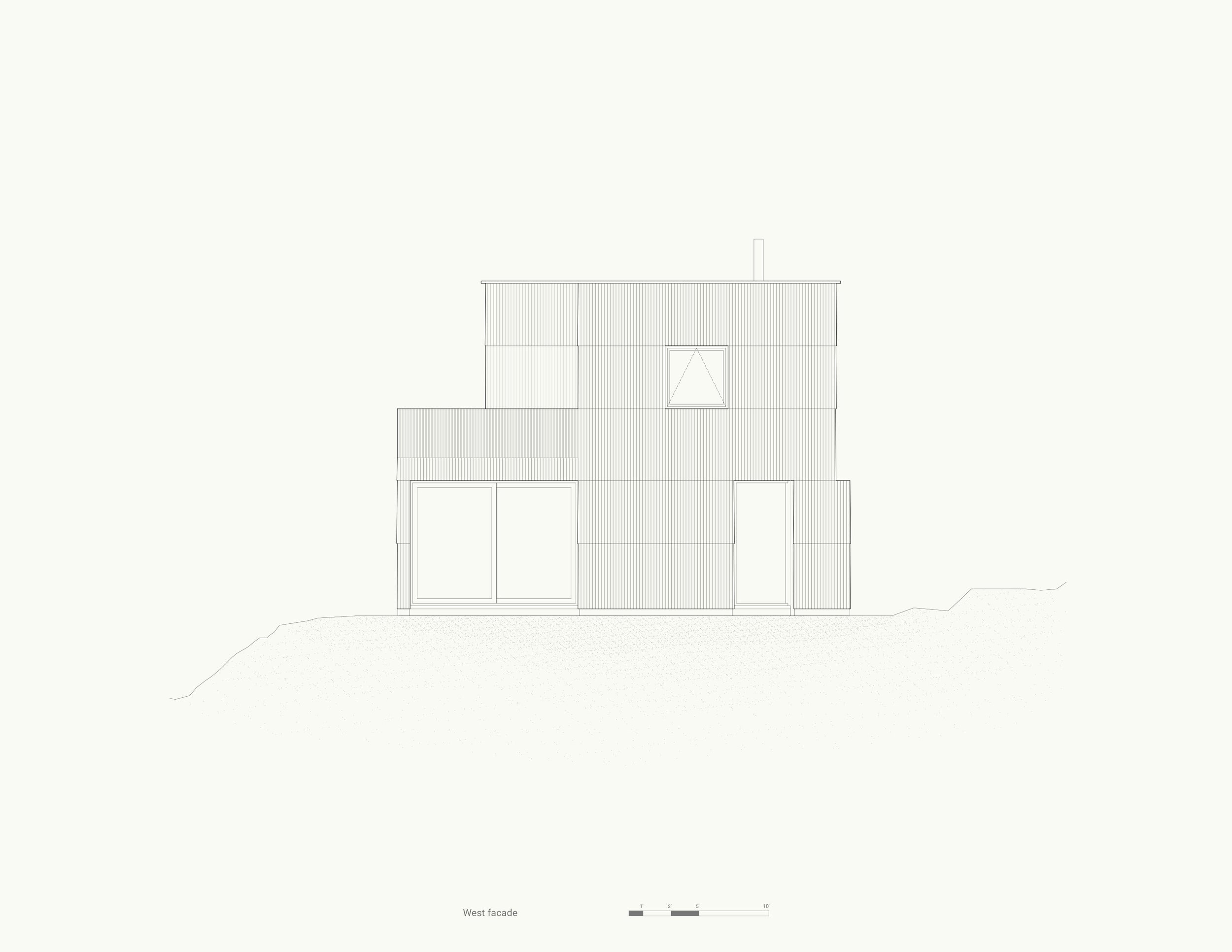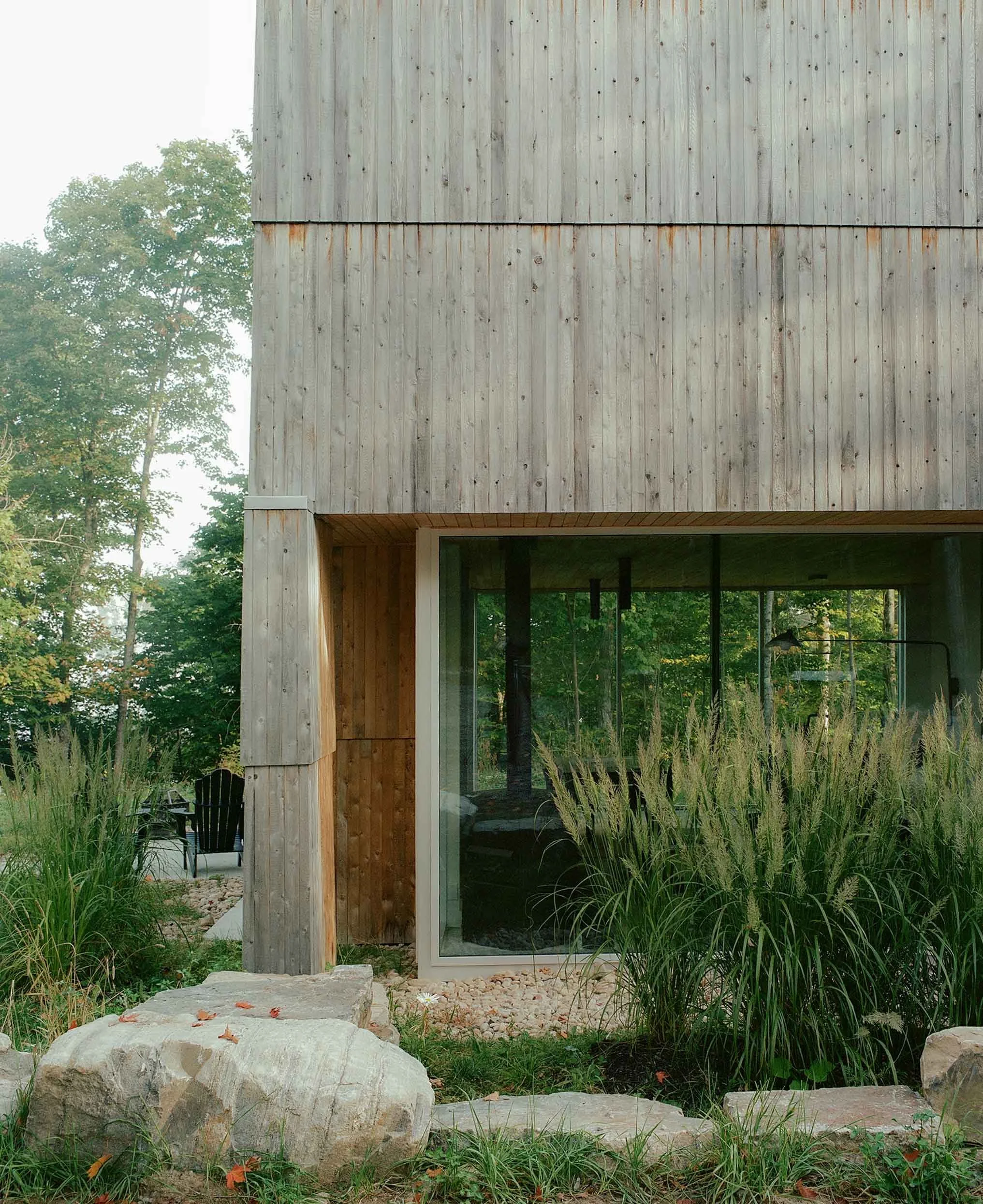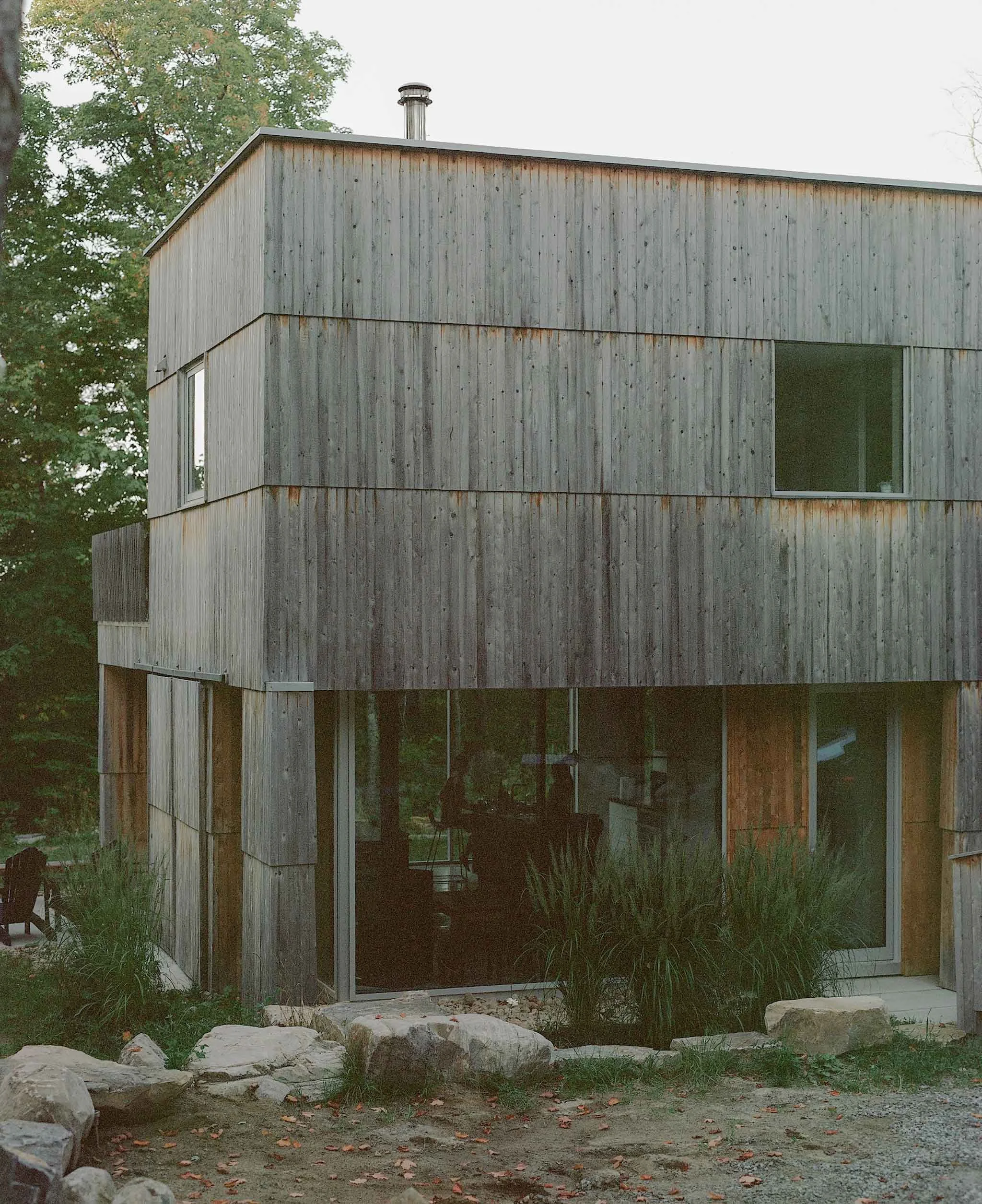 The architecture of this project aims to borrow the structural qualities of natural, brittle stratifications in their organization and porosity. The setbacks and projections of these layers accommodate architectural and spatial needs, such as canopies, terraces, and railings. The expression of these layers is reflected in the cladding of local cedar planks that overlap, creating drop shadows on the facades.