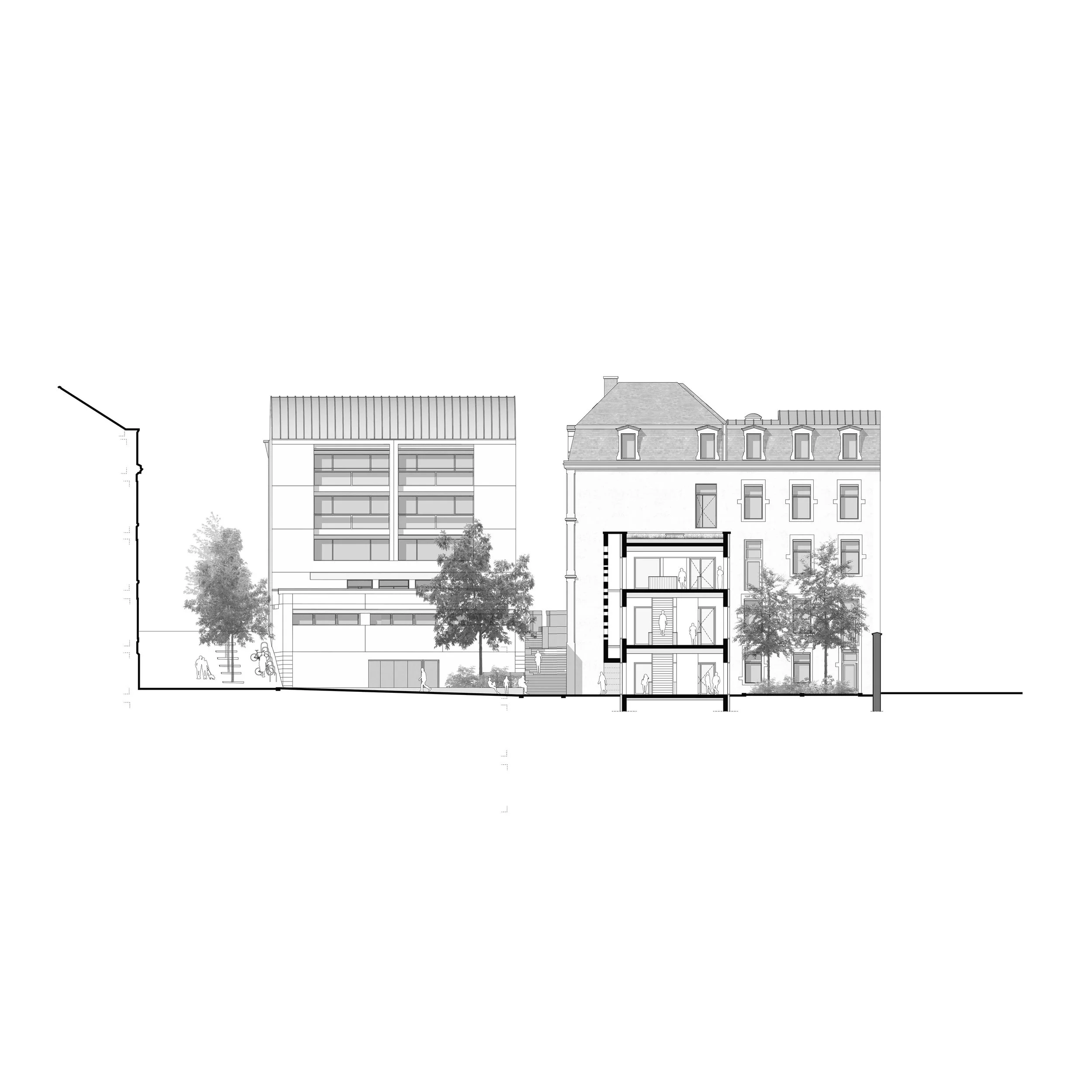 Located within the Carnot-Ravinelle Campus, the project site holds deep significance for the city of Nancy, both historically and architecturally. The University Palace, inaugurated in 1862, originally housed the faculties of Arts, Sciences, Law, Medicine, and the School of Pharmacy. At the time, it embodied the city’s ambition to become a center of intellectual influence. The new project takes root in this rich and prestigious setting. Accessible from Passage de Haldat, Rue de la Ravinelle, and Place Carnot, the property—comprising Buildings I, J, and L—forms an L-shaped layout along the northern and eastern edges of the plot. It sits within a dense urban fabric characteristic of the late 19th and early 20th centuries, adjacent to a contemporary structure designed by architects Christian François and Patricia Henrion.