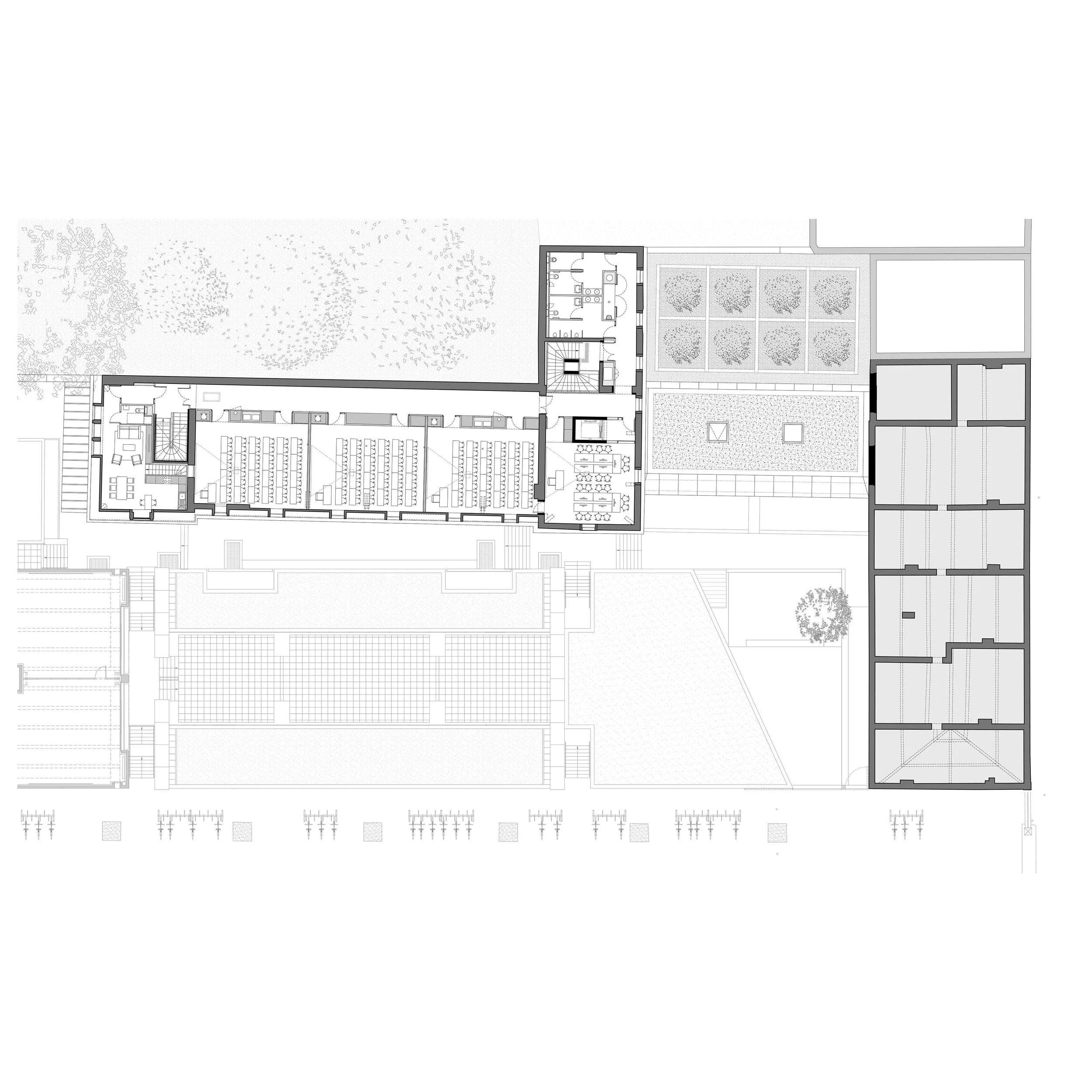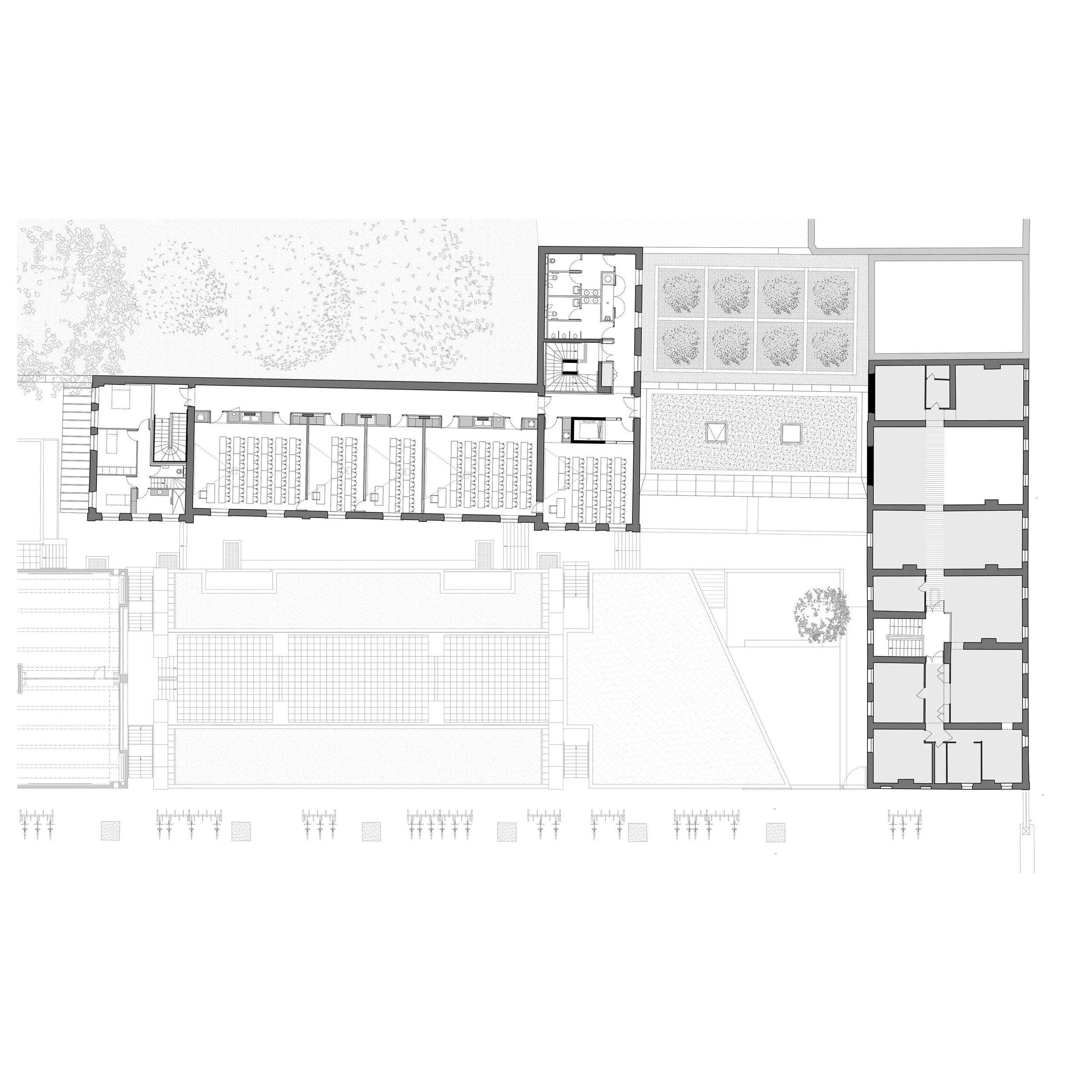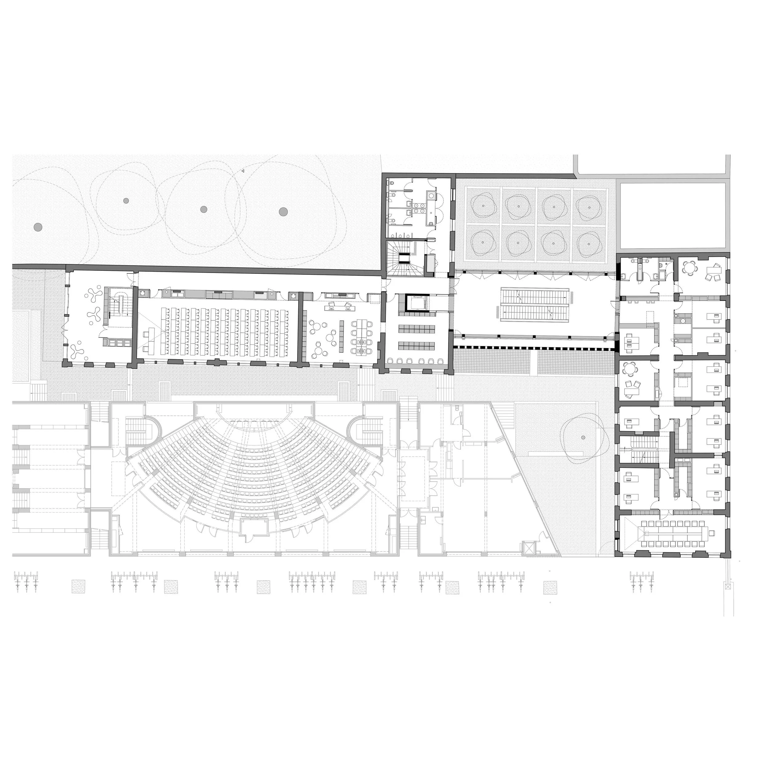 The project prioritizes simple, reliable energy strategies over high-tech systems. Paired with a high-performance building envelope, the gallery ensures excellent thermal and humidity comfort throughout the year, while the existing buildings are significantly upgraded in terms of energy efficiency. User well-being was a central design focus, from the abundant natural light to the refined detailing of solid wood furniture. The spaces invite movement, pause, and interaction—encouraging a dynamic and inclusive campus life. Through its thoughtful architecture and choice of materials, the new addition brings a timeless clarity and institutional presence to the entire site, reinforcing the university’s identity while seamlessly integrating with its historic fabric. Text description by the architects.