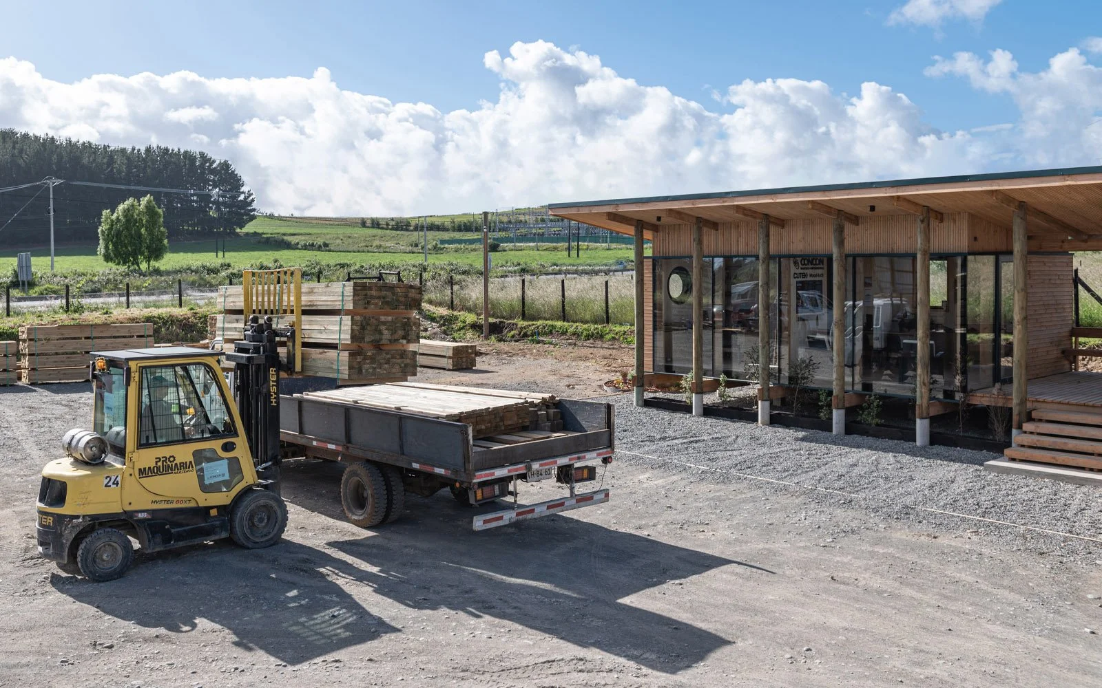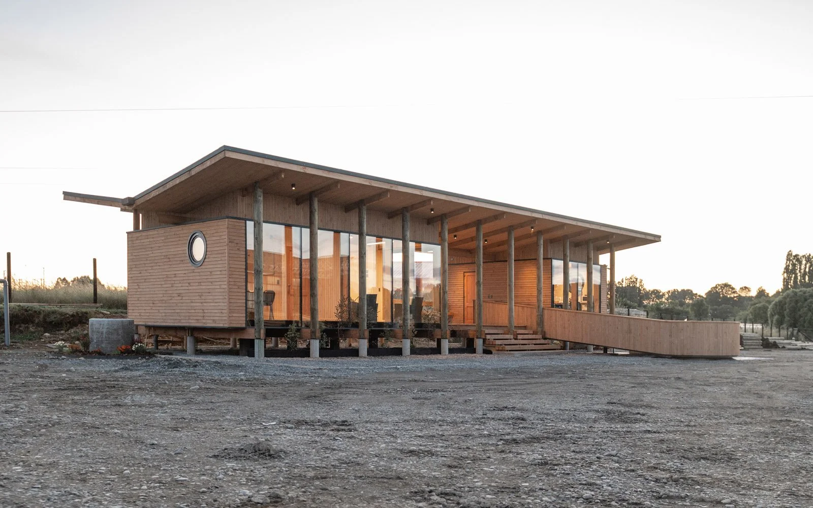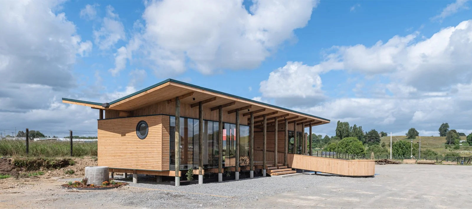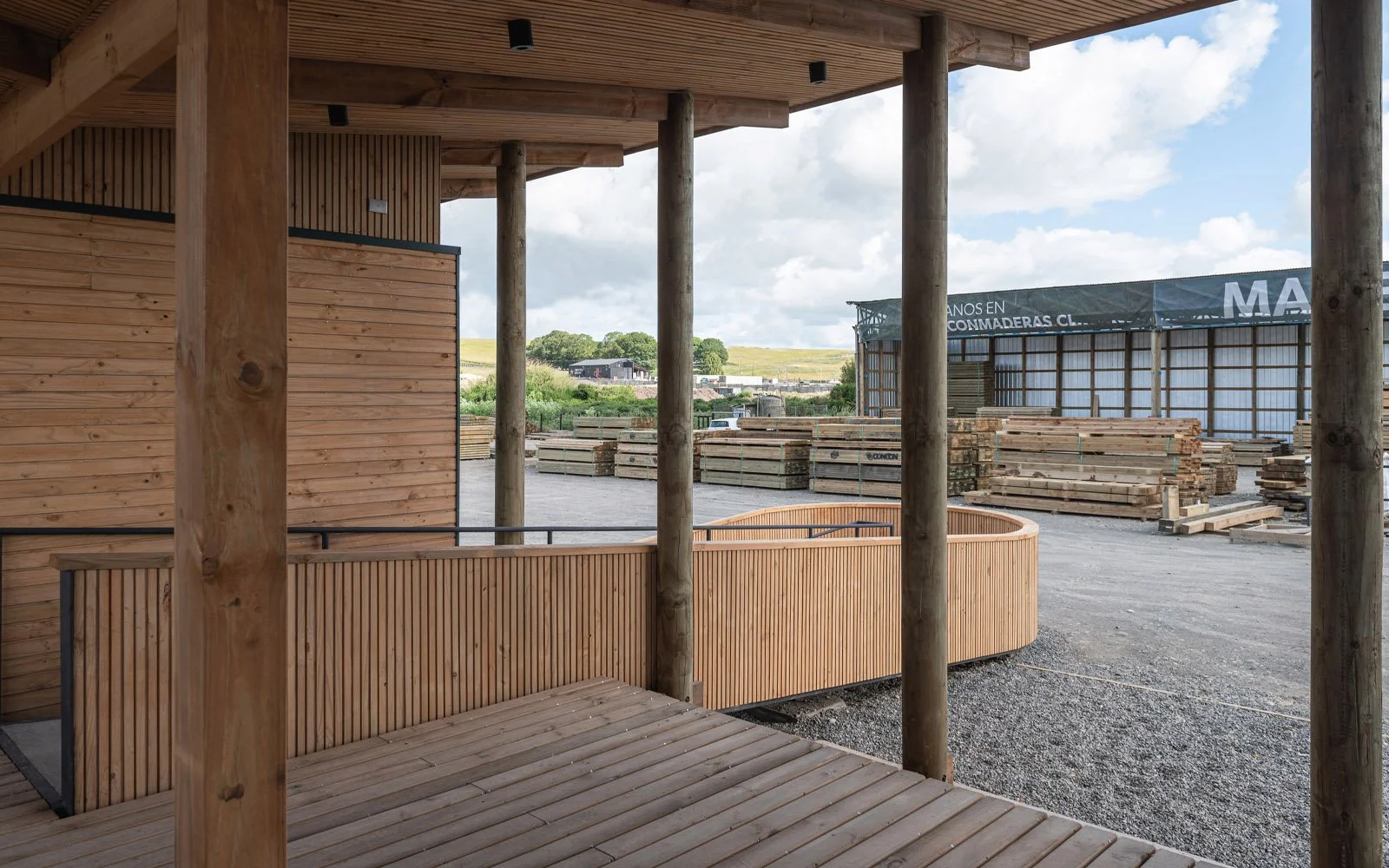 The Sales Modules project for Concón Maderas is conceived as a small experimental building that explores the constructive, spatial, and expressive possibilities of impregnated timber within a demanding, highly exposed industrial context. More than a simple point of sale, the commission sought to transform a functional program into an architectural piece capable of representing the company’s craft and products.