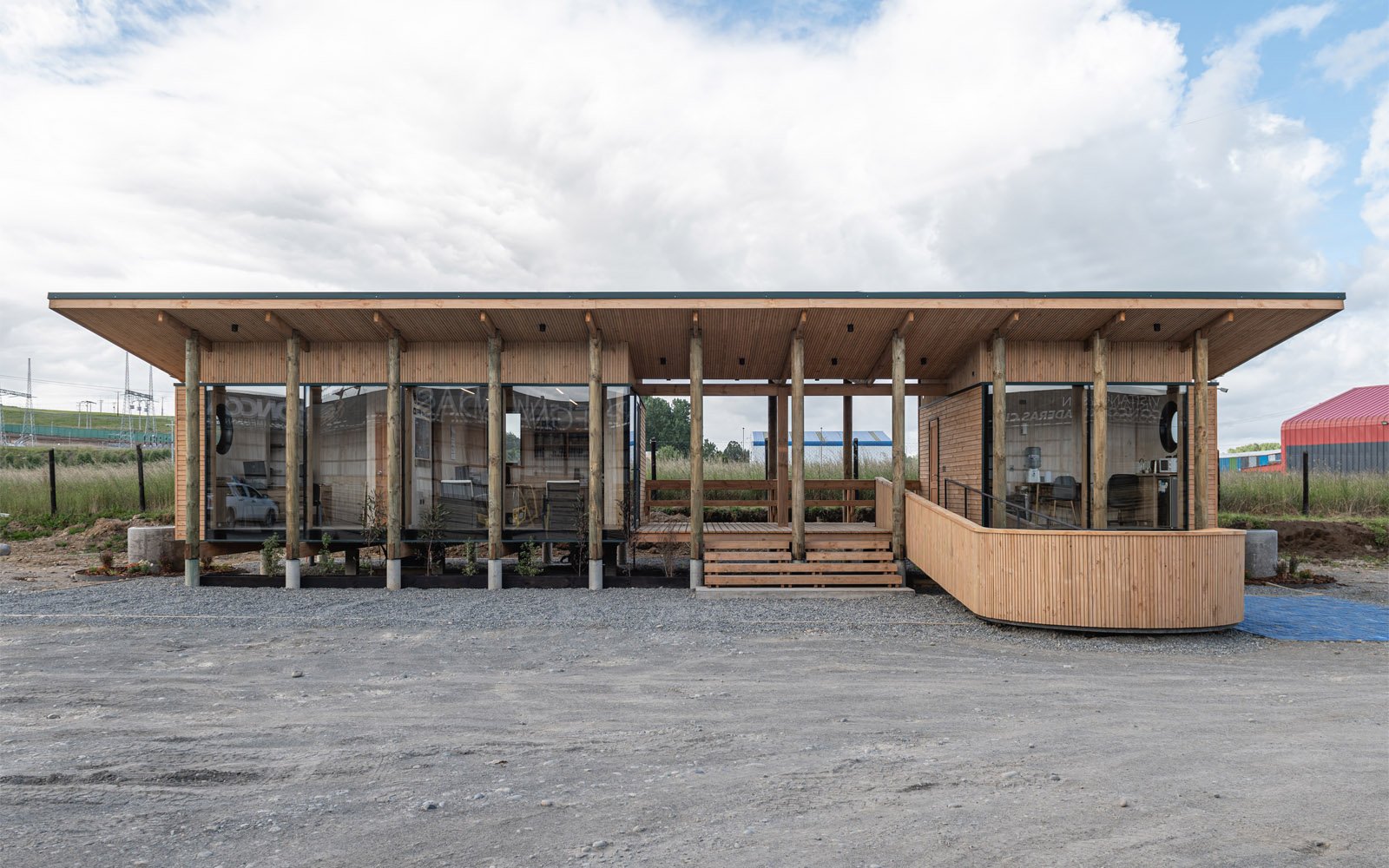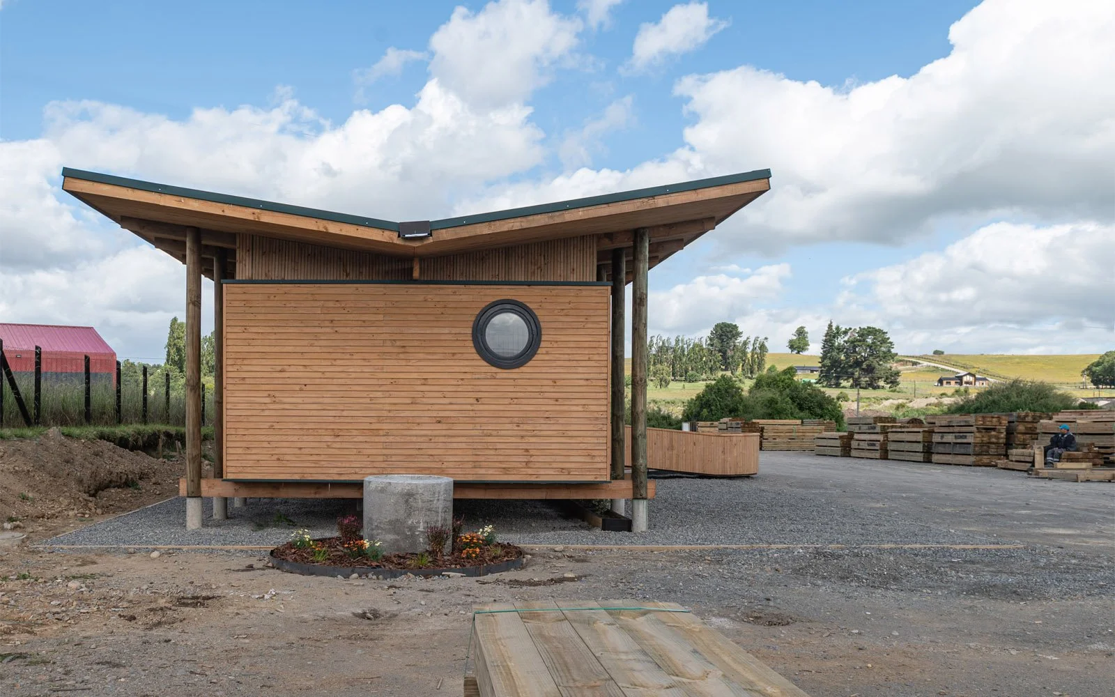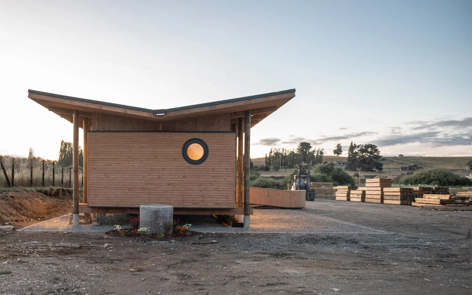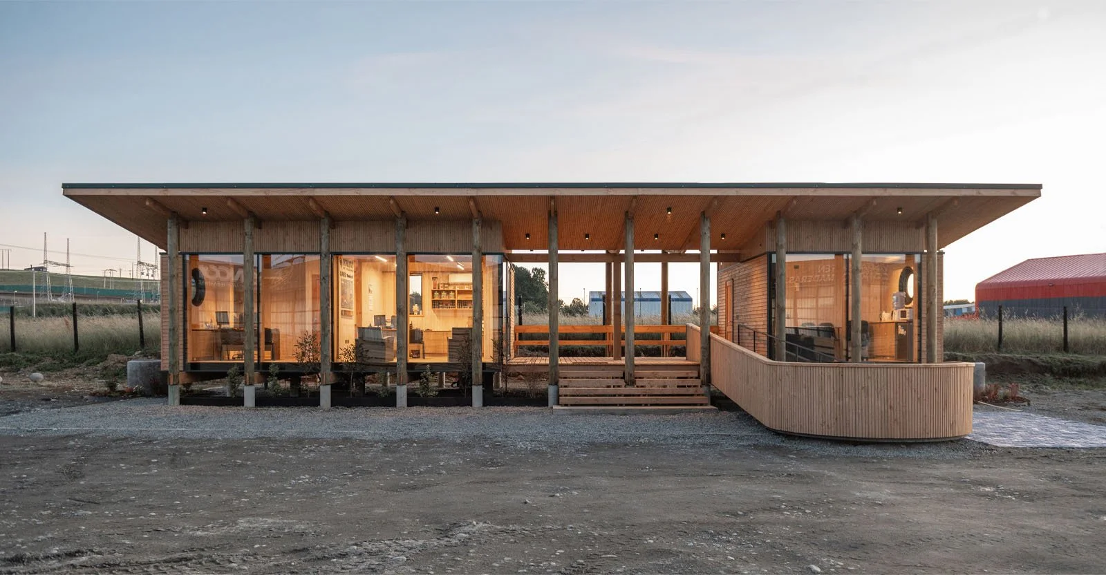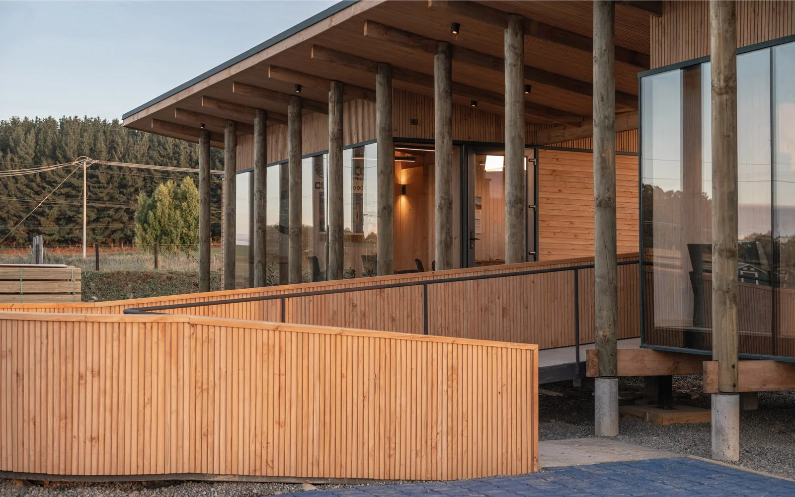 The Sales Modules project for Concón Maderas is conceived as a small experimental building that explores the constructive, spatial, and expressive possibilities of impregnated timber within a demanding, highly exposed industrial context. More than a simple point of sale, the commission sought to transform a functional program into an architectural piece capable of representing the company’s craft and products.