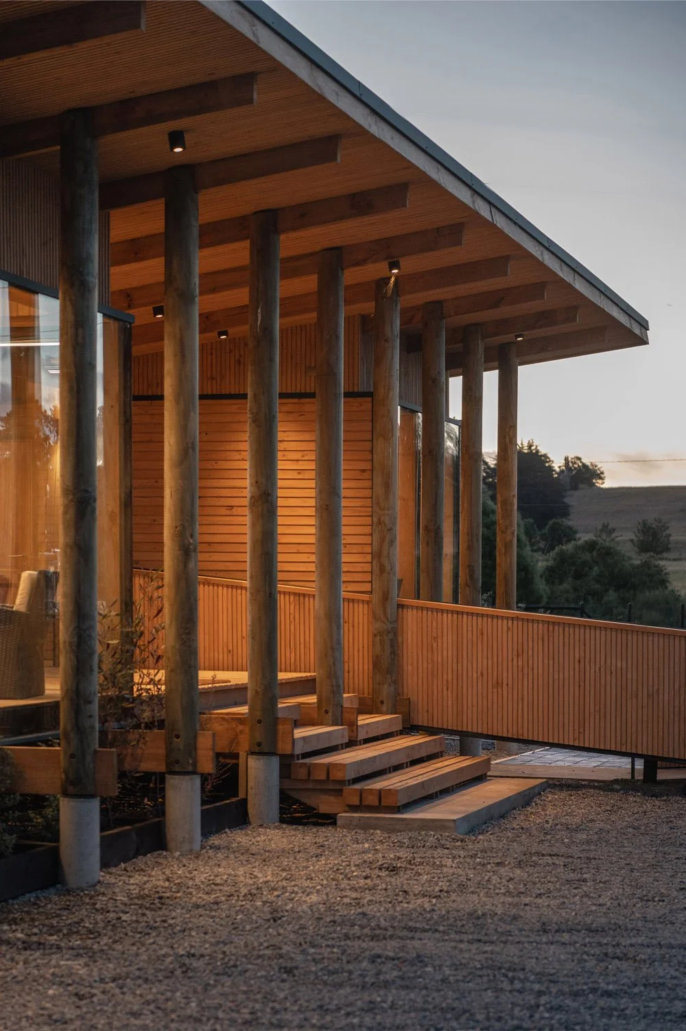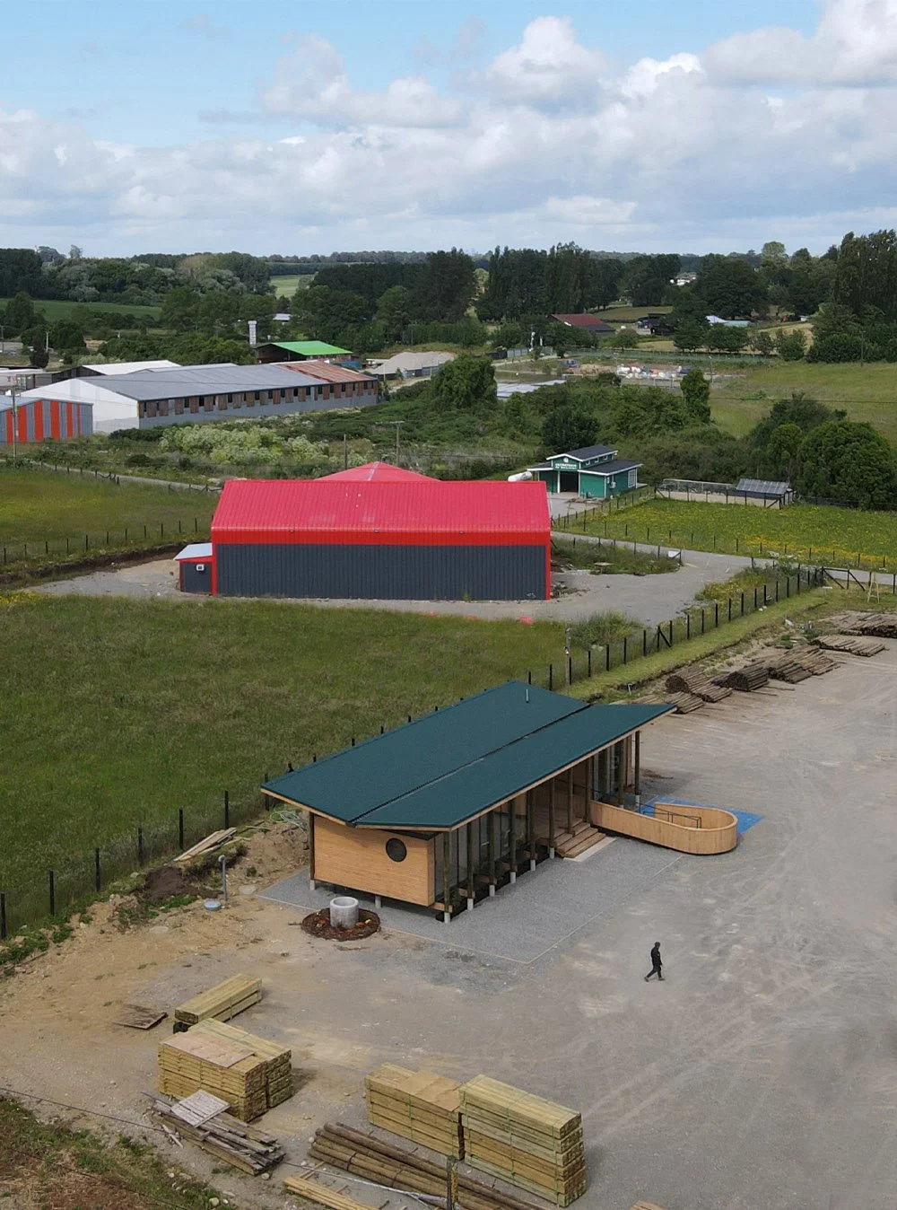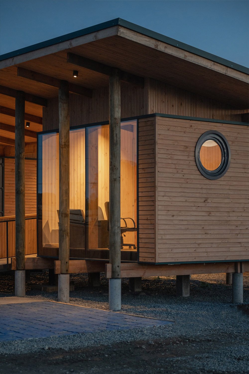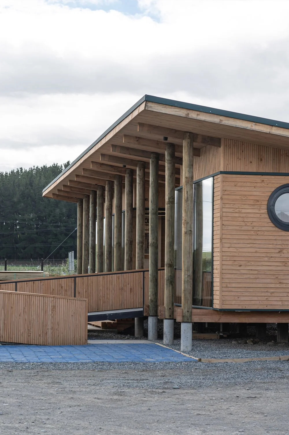 The Sales Modules project for Concón Maderas is conceived as a small experimental building that explores the constructive, spatial, and expressive possibilities of impregnated timber within a demanding, highly exposed industrial context. More than a simple point of sale, the commission sought to transform a functional program into an architectural piece capable of representing the company’s craft and products.