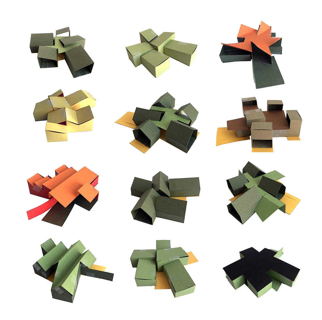 The programme, conceived as a shared family dwelling for three siblings, is articulated through five independent yet interrelated volumes. Three house private living quarters—one for each sibling—ensuring autonomy and seclusion, while the remaining two accommodate communal functions, including living, dining, and kitchen spaces. Circulation and storage are consolidated in the interstitial spaces, which mediate between the individual units. The scheme is designed to be flexible, allowing for dynamic shifts in privacy and occupation, accommodating both shared and solitary living arrangements.
