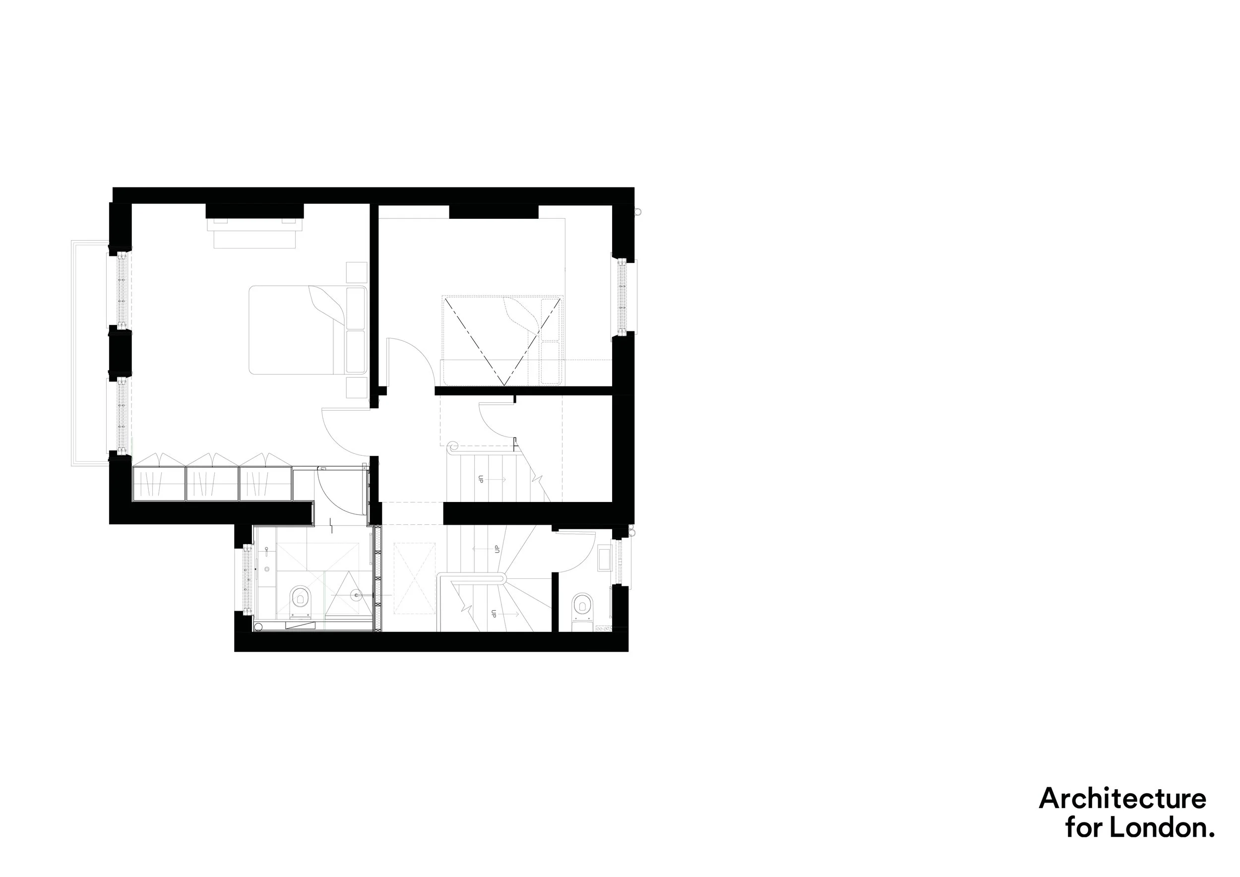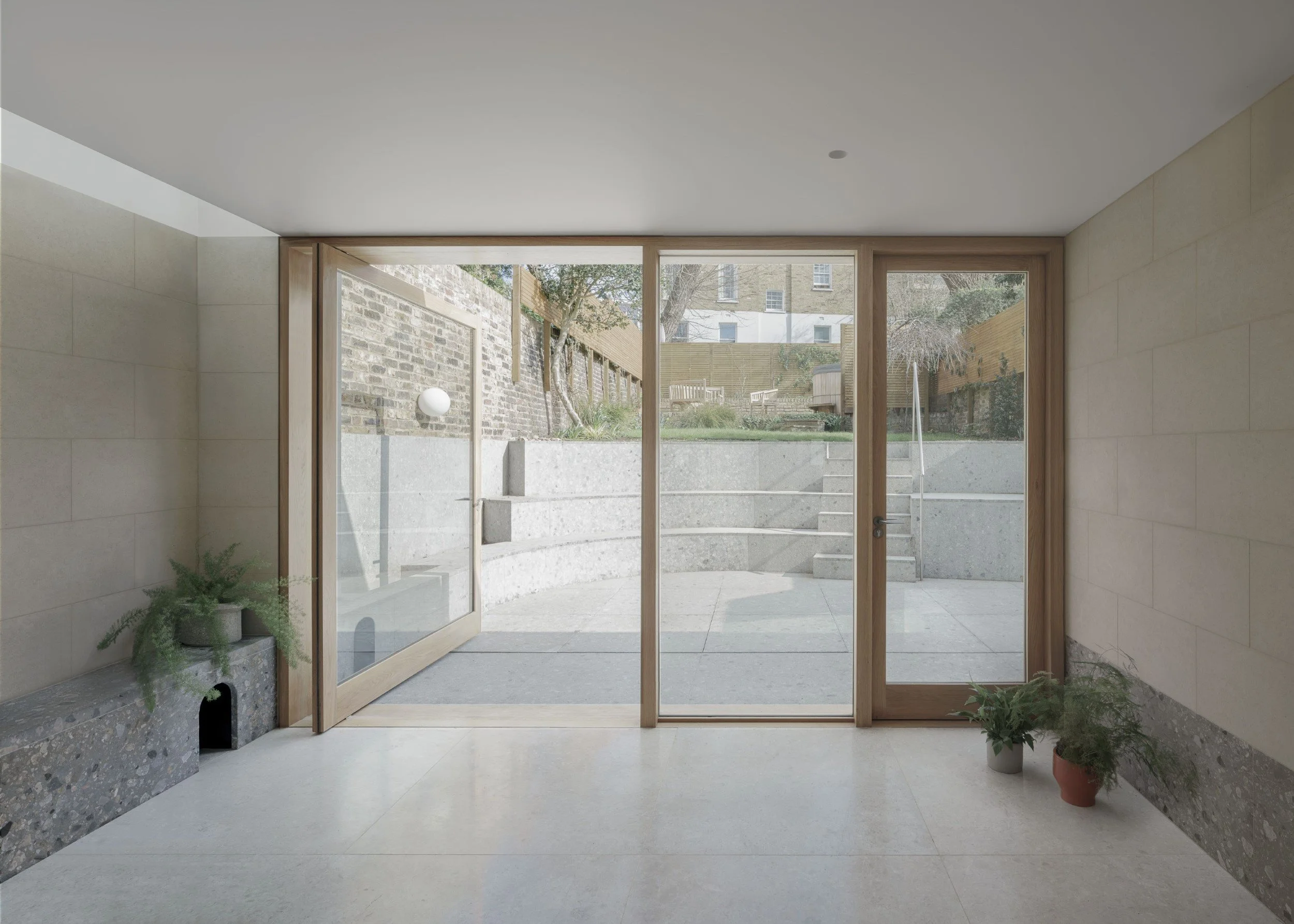 The existing rear lightwell has been extended to form a stepped sunken terrace of bush-hammered stone appearing to have been carved into a rock face. The terrace curves to follow the sun’s path throughout the afternoon in a series of benches bathed in light.