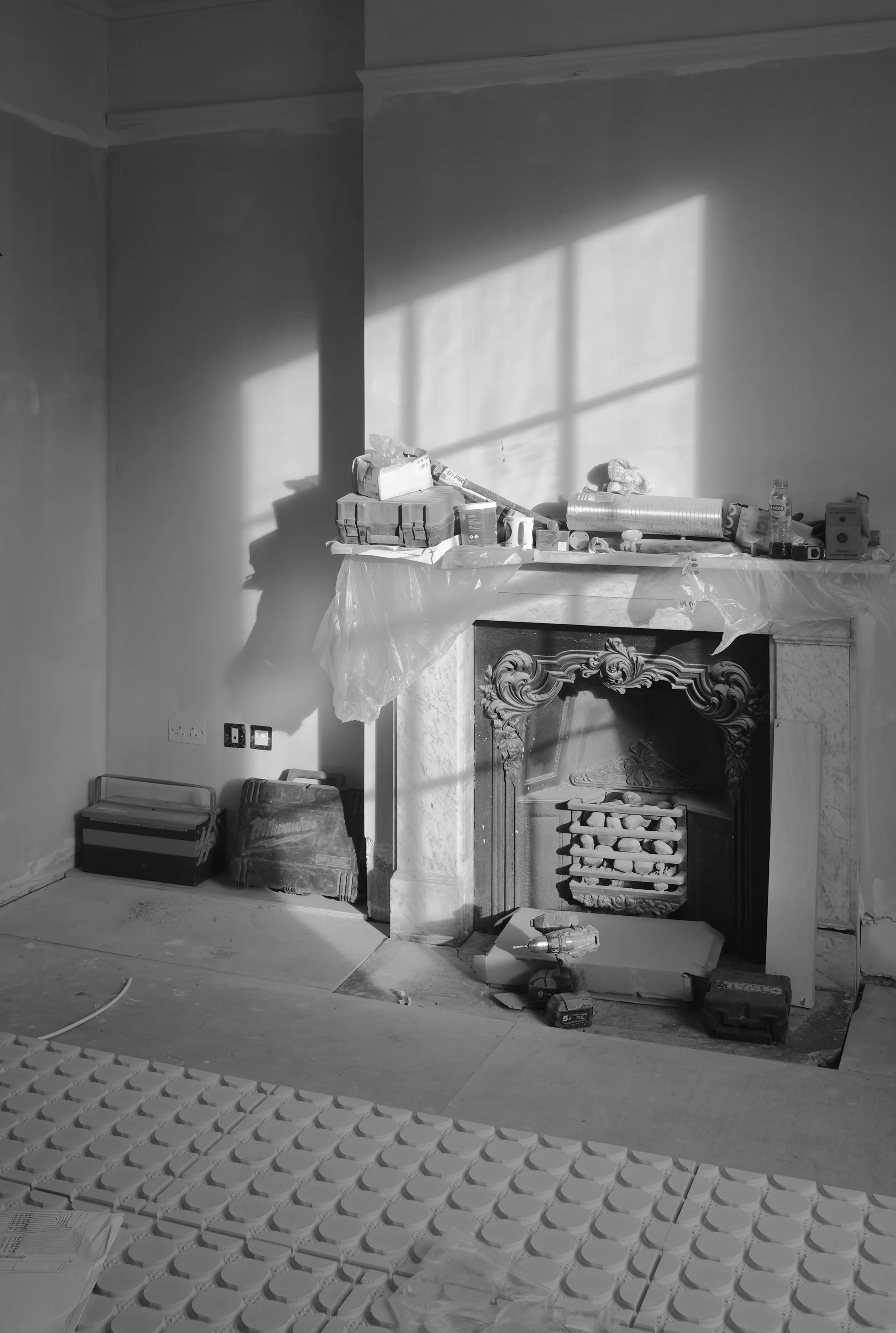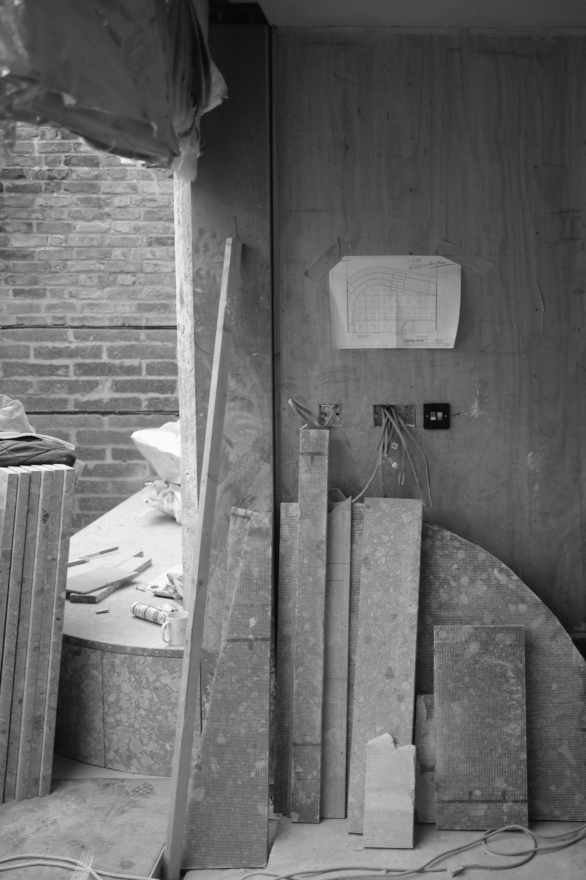 Externally an oversized concrete header was honed to reveal limestone quarried in Derbyshire, its visual weight suggesting permanence.