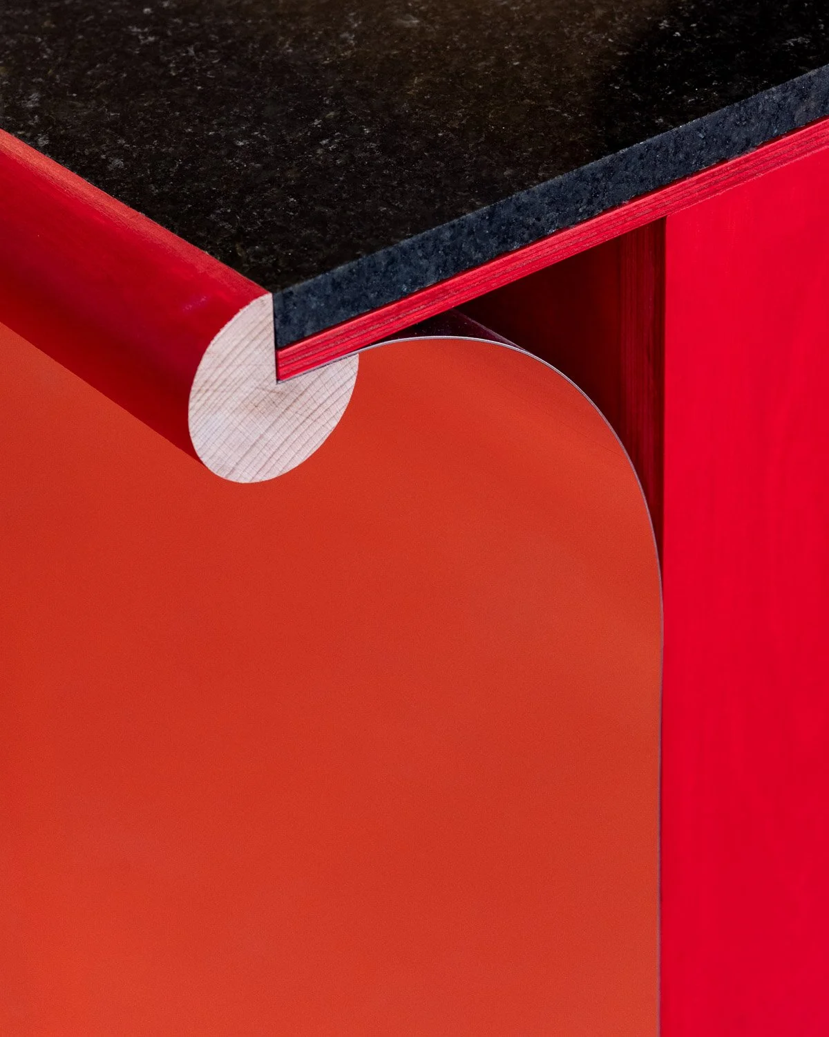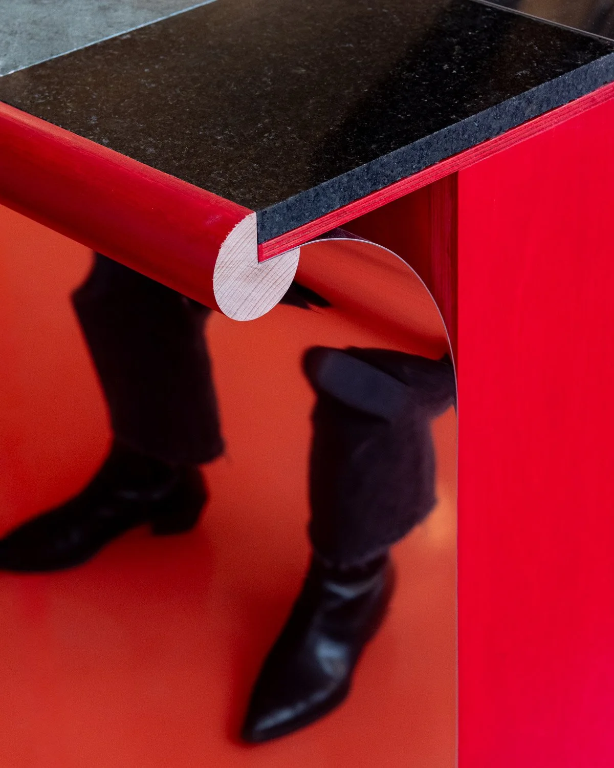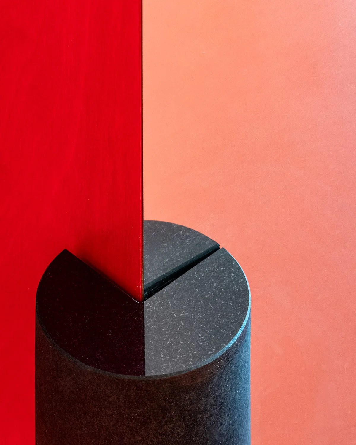 The green marble was leftover from one of the company’s trade show stands. Already cut to the size 30 × 90 cm, it set the design rhythm. In contrast, the black granite, originally a carrier for a higher-quality stone, and the white marble — a fragment left behind on its way to its intended destination, a jeweler in Doha.