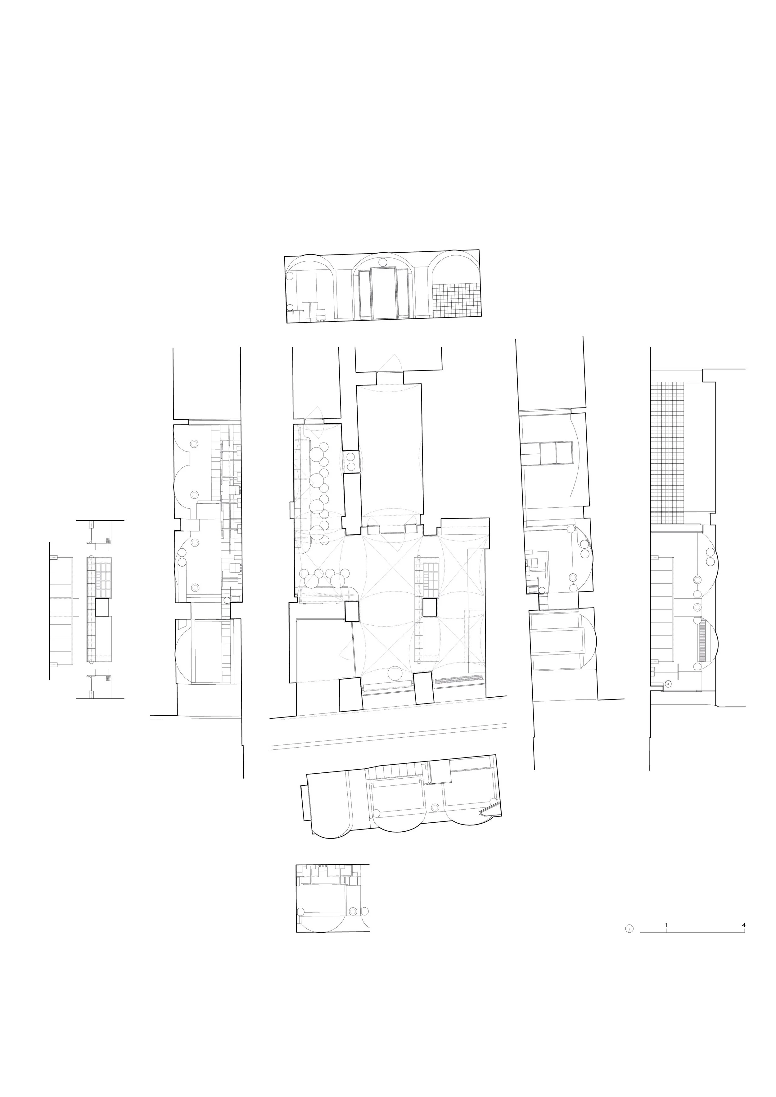 A retail space in a 17th-century building. Situated at a narrow point on Graz’s Annenstraße — seemingly marking the transition to the inner city. Once a men’s outfitter, later briefly a kebab shop, it was meant to return to that use. What we found was the bare structure. Potentials and challenges were revealed: deep, compact, and intricate, defined by a geometrically complex weave of arches and vaults. Only the ventilation system remained.
