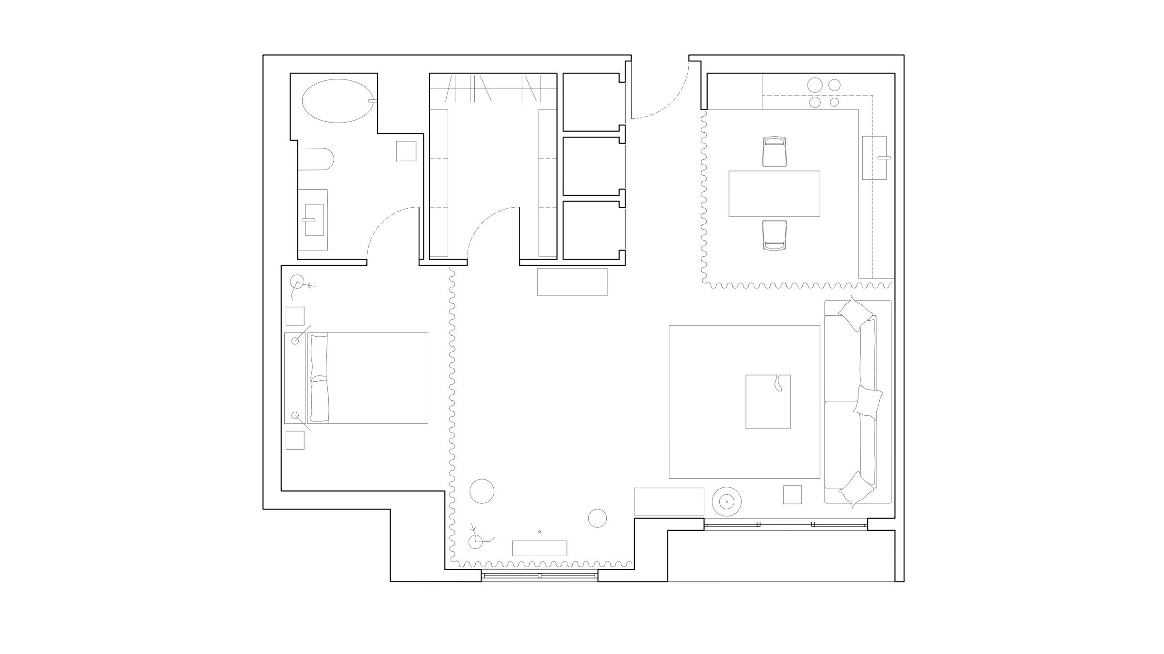 The open floor plan ideology, where spatial domestic functions blend, was a preference for a couple in their mid-thirties. The space serves as both a living area and a place for gathering, with functions divided by curtains as flexible elements. This flexibility allows the apartment to transform from an open plan to a diagram driven by the specific use of each space, permitting daylight to pass through as uniformly as possible.