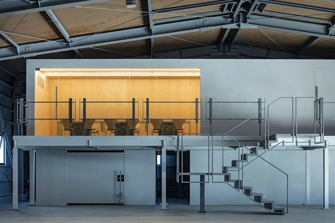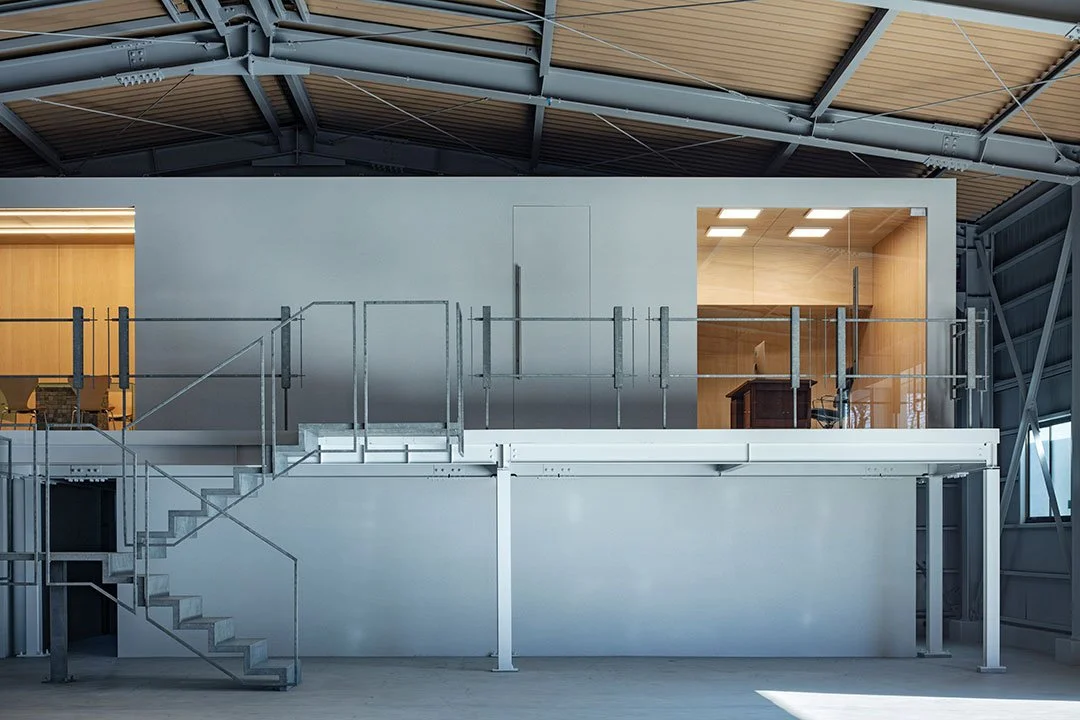 This project involves creating a new office within the fabrication factory of a company whose primary business is the construction of retail spaces and offices.