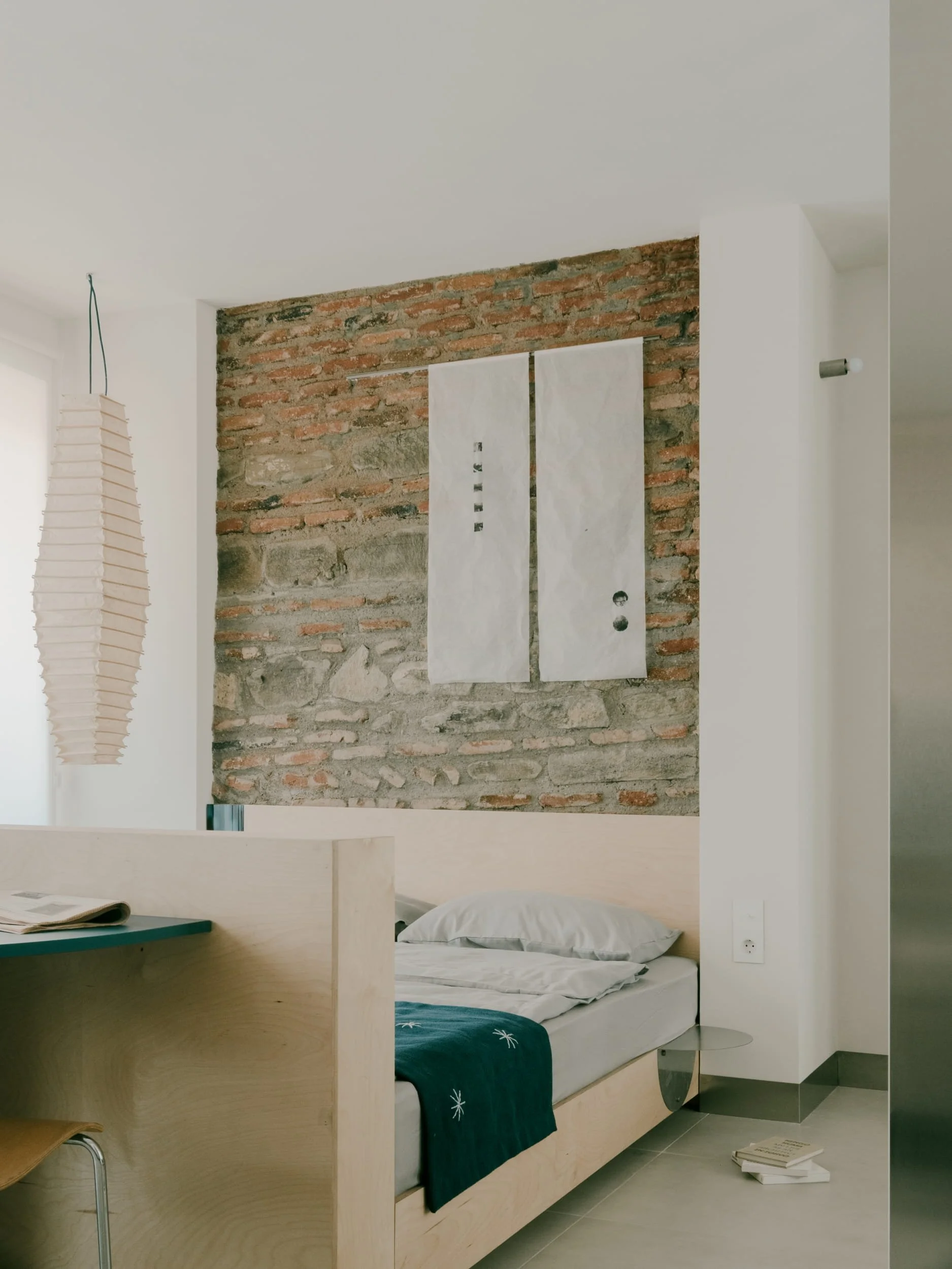 Unit 20, located in the heart of Mtatsminda, continues a series of projects that reconsider what it means to design for the contemporary rental market and in this case - within historically charged contexts. Housed in a residential building of significant urban and cultural value—officially recognized as a heritage monument—the project engages in a careful dialogue between past and present. Respect for the building’s history is a key design principle. The brickwork and the placement of stones is read as a material memory embedded in the urban fabric. Interestingly, this narrative extends into the interior; a piece of an existing brick wall was deliberately left exposed and untouched, acting as a quiet yet powerful reminder of the site’s past, in order to embrace the memory. Rather than competing with old elements, the new interventions complement them, allowing old and new to coexist harmoniously.